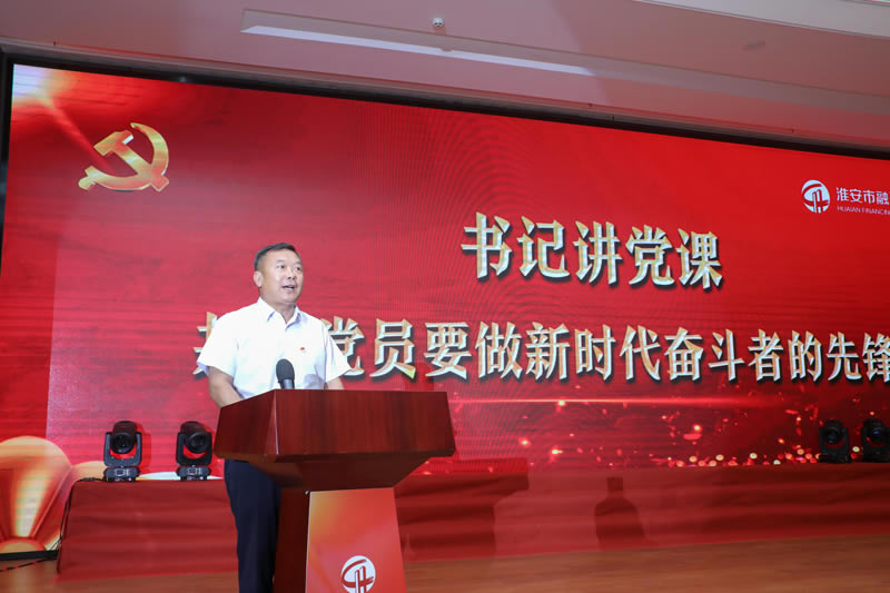 集團書記、董事長、總經(jīng)理紀福連同志以《共產(chǎn)黨員要做新時代奮斗者的先鋒》為題給與會人員上了一堂生動的黨課,他要求全體黨員要做思想解放、創(chuàng)新求變的先行者,政治站位高、政治意識強的堅定者,講規(guī)矩、有紀律的示范者,道德高尚、品行優(yōu)良的榜樣者,敢擔當、有作為、真抓實干的踐行者。要在習近平新時代中國特色社會主義思想引領下,以只爭朝夕、時不我待的緊迫感,振奮精神、開拓進取,創(chuàng)新奉獻,充分發(fā)揮好國有擔保機構(gòu)作為政府資金的“放大器”、銀行信貸風險的“減壓器”、培育中小企業(yè)的“孵化器”及支持區(qū)域經(jīng)濟發(fā)展的“助推器”等作用,努力實現(xiàn)集團“全省一流、全國有位”,為淮安決勝全面建成小康社會作擔保貢獻。